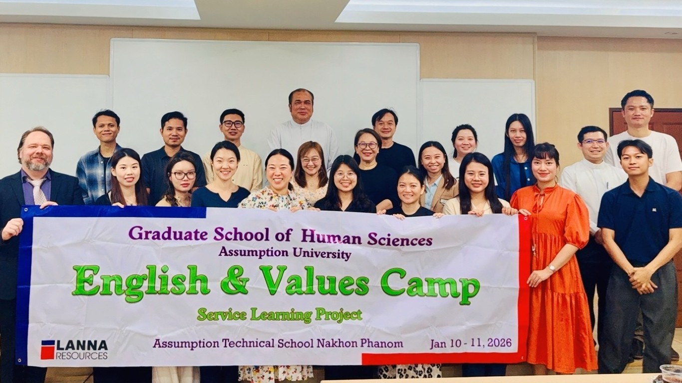 As part of the courses Seminar in Teacher Educational Ethics and Seminar in Educational Administration and Leadership, 19 graduate students from the Graduate School of Human Sciences participated in a service-learning project at Assumption Technical School Nakhon Phanom on January 10–11, 2026. The project was led by Asst. Prof. Dr. Poonpilas Asavisanu and Dr. Timothy Scott.